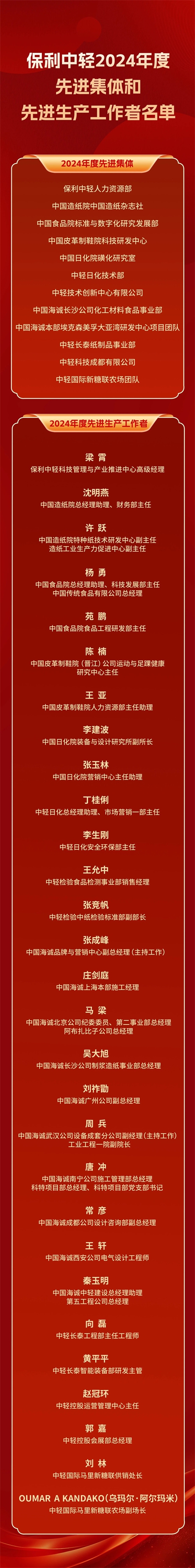保利中輕先進(jìn)集體先進(jìn)生產(chǎn)工作者名單