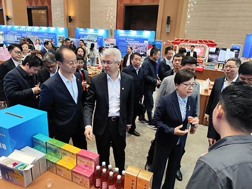 中國(guó)職業(yè)技術(shù)教育學(xué)會(huì)魯昕會(huì)長(zhǎng)參觀保利中輕展臺(tái)。